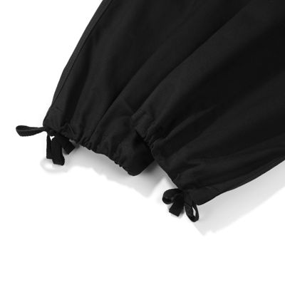 鬆緊腰可搭配皮帶穿著,褲腳抽繩可自行調節