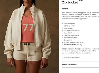 FOG ESSENTIALS 小字母立領拉鍊外套