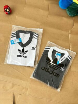 簡約圓領設計,貼合頸部線條。標誌性三葉草 logo 點綴大V胸口