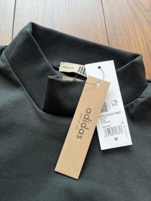 男女同款,半高小圓領,收束的螺紋衣擺,配合袖子的立體裁剪