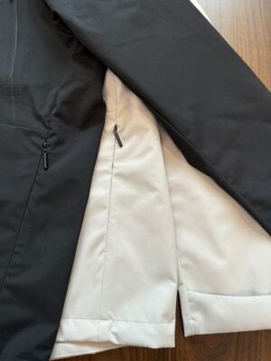 隱藏式拉鍊口袋、斜門徑設計、壓膠拉鍊