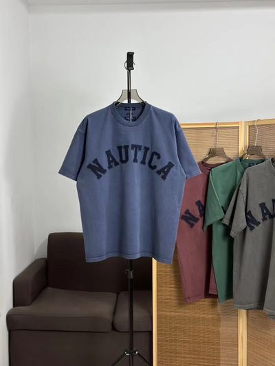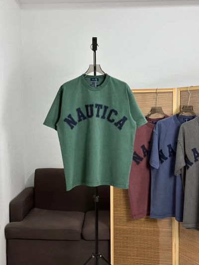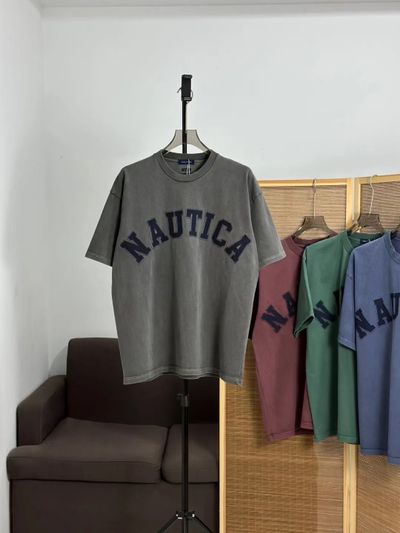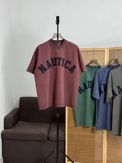 NAUTICA JAPAN 純色字母貼布水洗做舊短袖