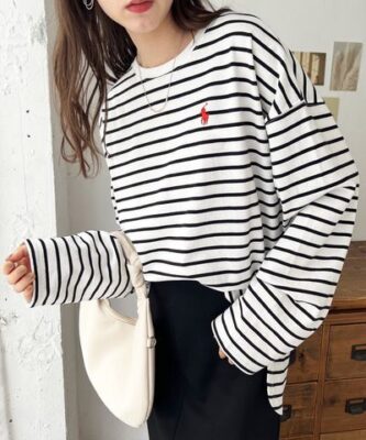 POLO RALPH LAUREN 小標刺繡條紋長袖寬鬆長袖