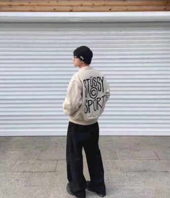 STUSSY Sport 後背大字母夾棉毛呢棒球外套